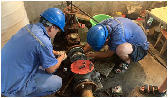 近日,供水中心維修人員在對(duì)城區(qū)各供水泵點(diǎn)進(jìn)行“體檢”時(shí)發(fā)現(xiàn)高航泵點(diǎn)電氣啟動(dòng)柜聲音異常、高航供水泵點(diǎn)運(yùn)行時(shí)間長(zhǎng)的問題,維修人員立即對(duì)供水設(shè)備進(jìn)行故障排查,同時(shí)發(fā)布片區(qū)停水通知。由于高航供水泵點(diǎn)的正常運(yùn)行直接關(guān)系著高航社區(qū)居民的正常生活用水,供水中心維修人員加緊對(duì)高航供水泵點(diǎn)電氣設(shè)備進(jìn)行維修檢查,對(duì)取水泵進(jìn)行保養(yǎng),并更換了電氣柜,經(jīng)過幾個(gè)小時(shí)的連續(xù)高溫作業(yè),高航泵點(diǎn)供水設(shè)備恢復(fù)正常使用,高航社區(qū)居民恢復(fù)正常供水。