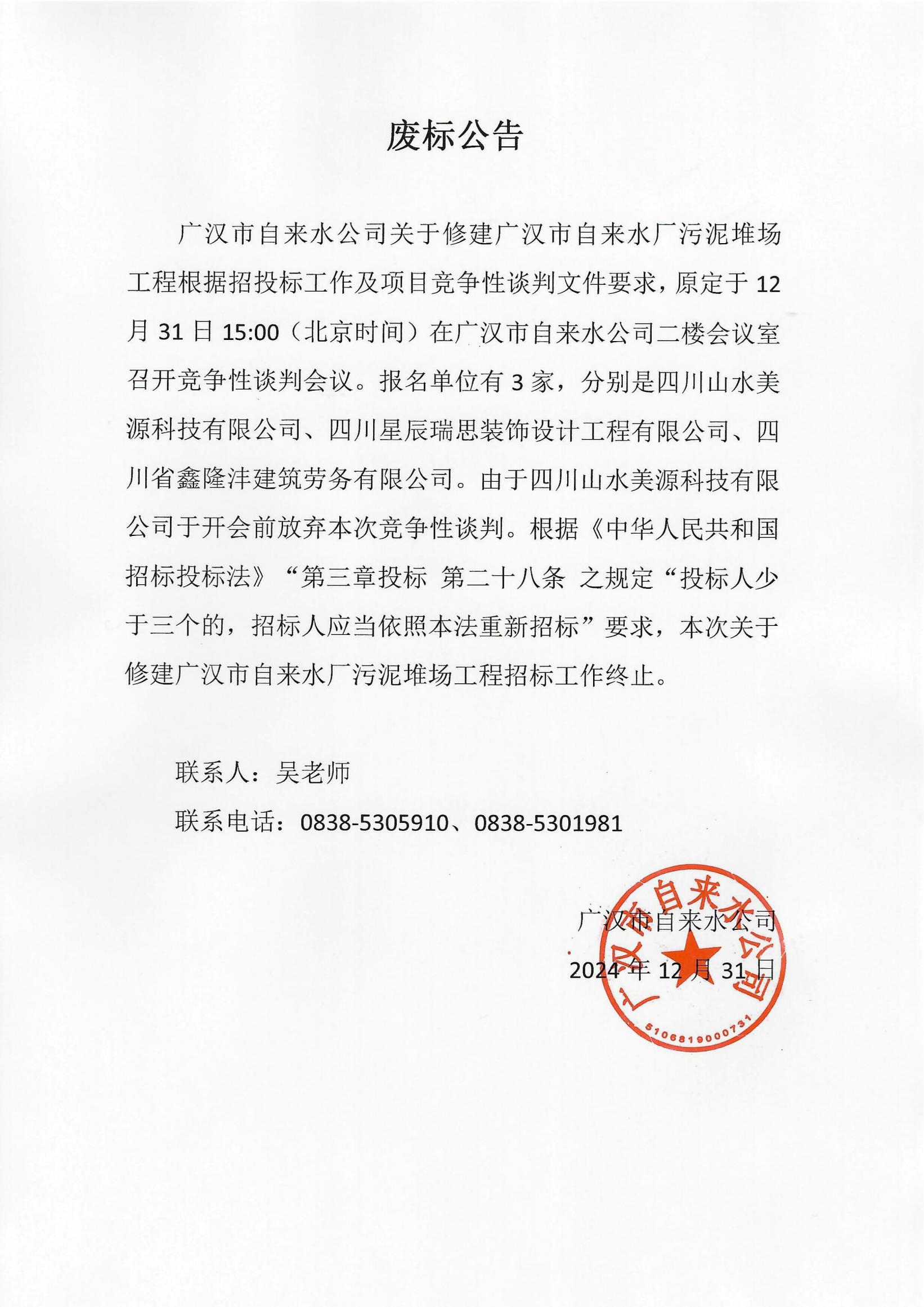 關(guān)于四川山水美源科技有限公司關(guān)于修建廣漢市自來(lái)水廠污泥堆場(chǎng)工程項(xiàng)目質(zhì)疑函的答疑