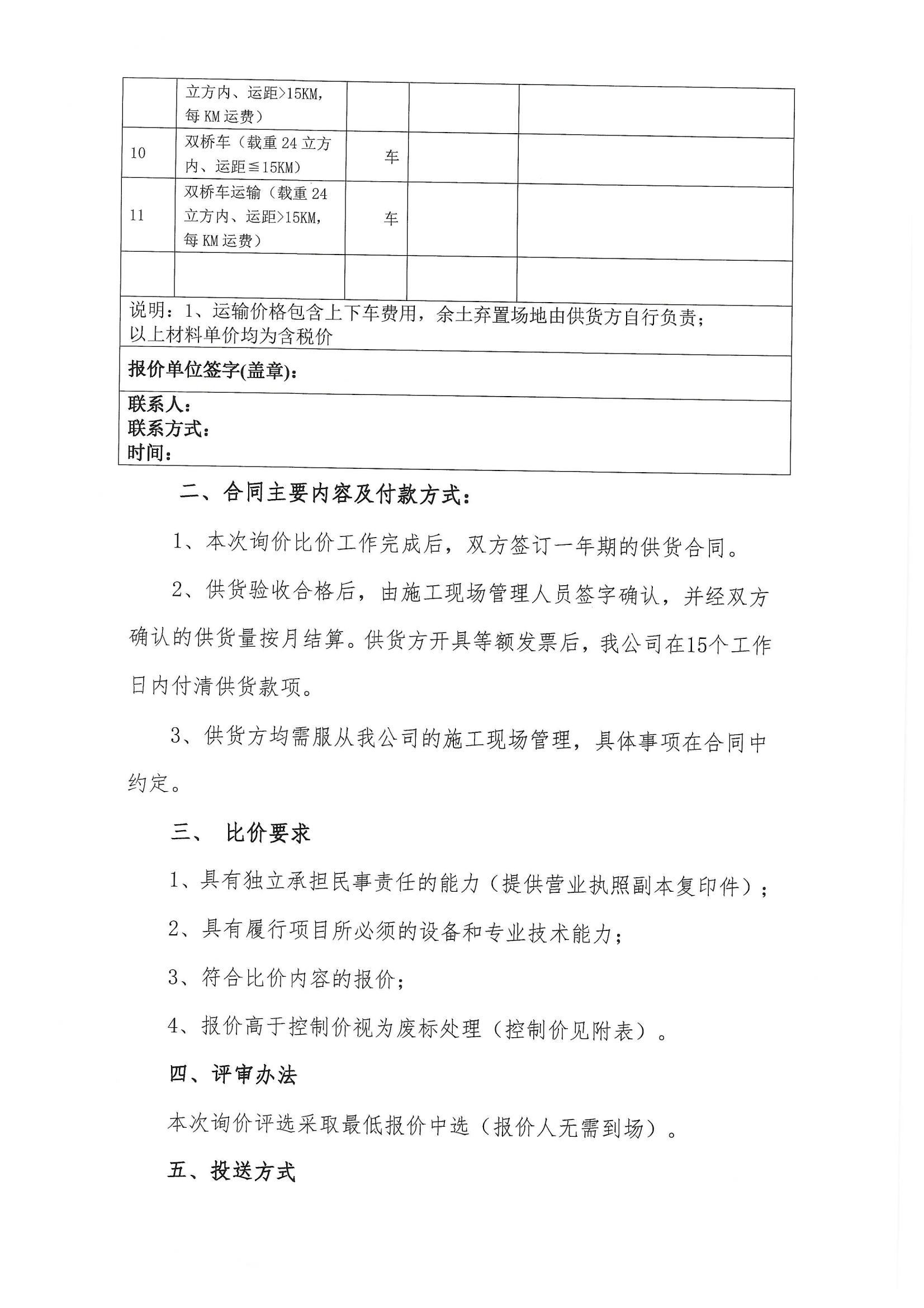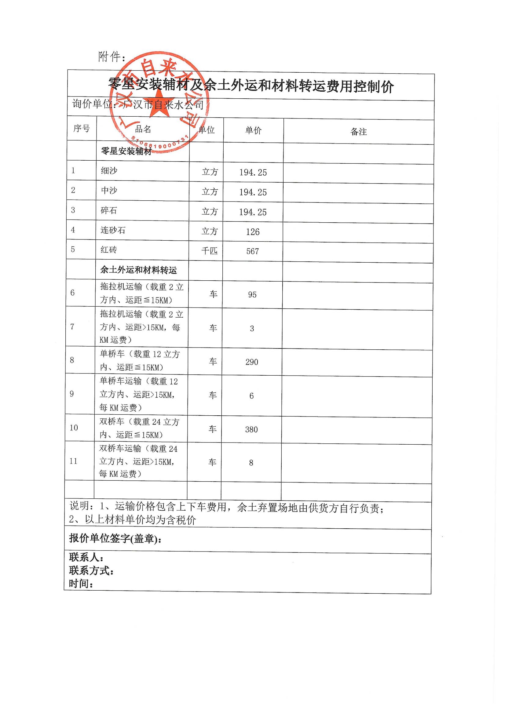 零星安裝輔材及余土外運和材料轉(zhuǎn)運費用第三次詢價