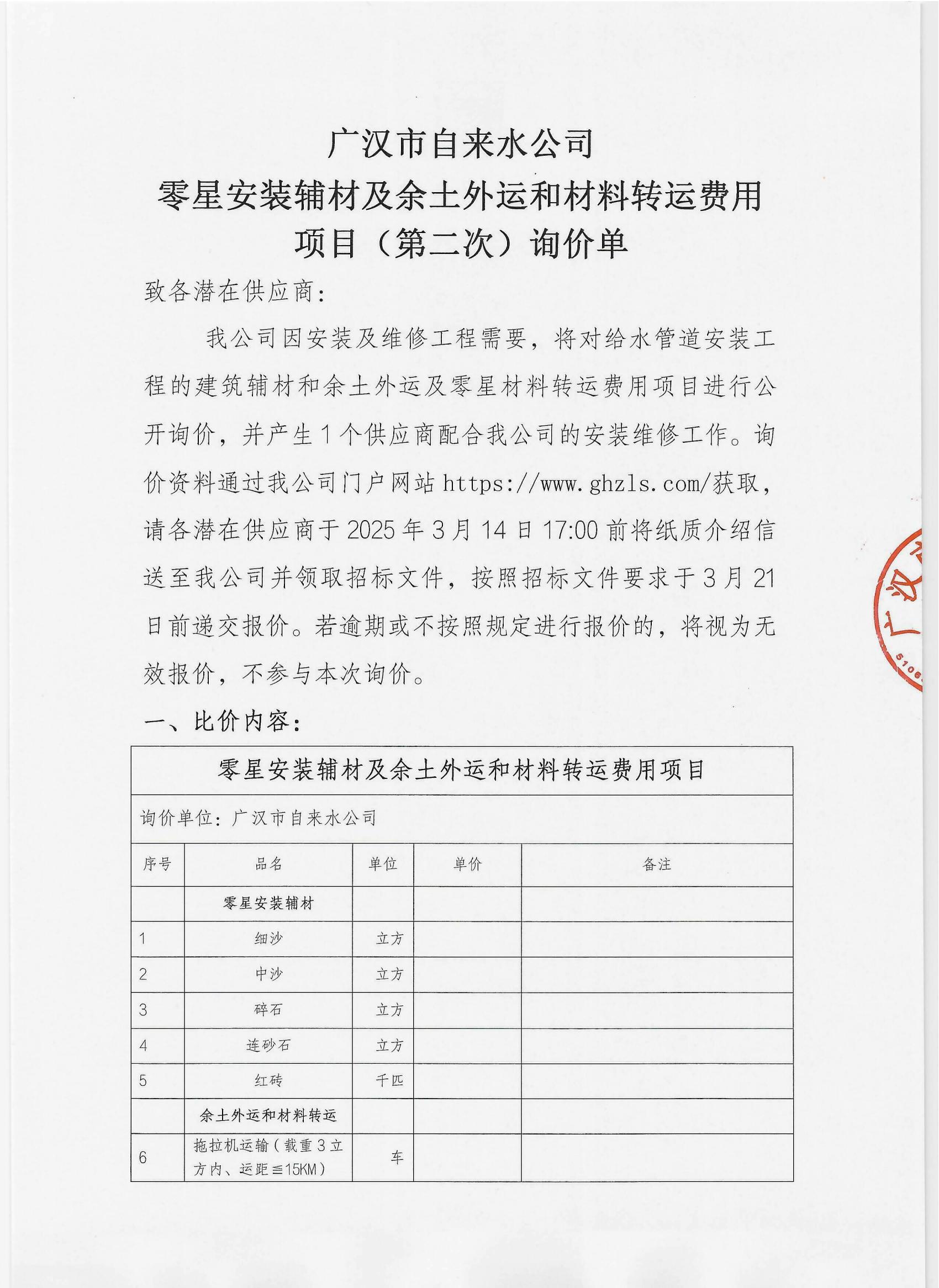 零星安裝輔材及余土外運(yùn)和材料轉(zhuǎn)運(yùn)費(fèi)用項(xiàng)目詢價(jià)單