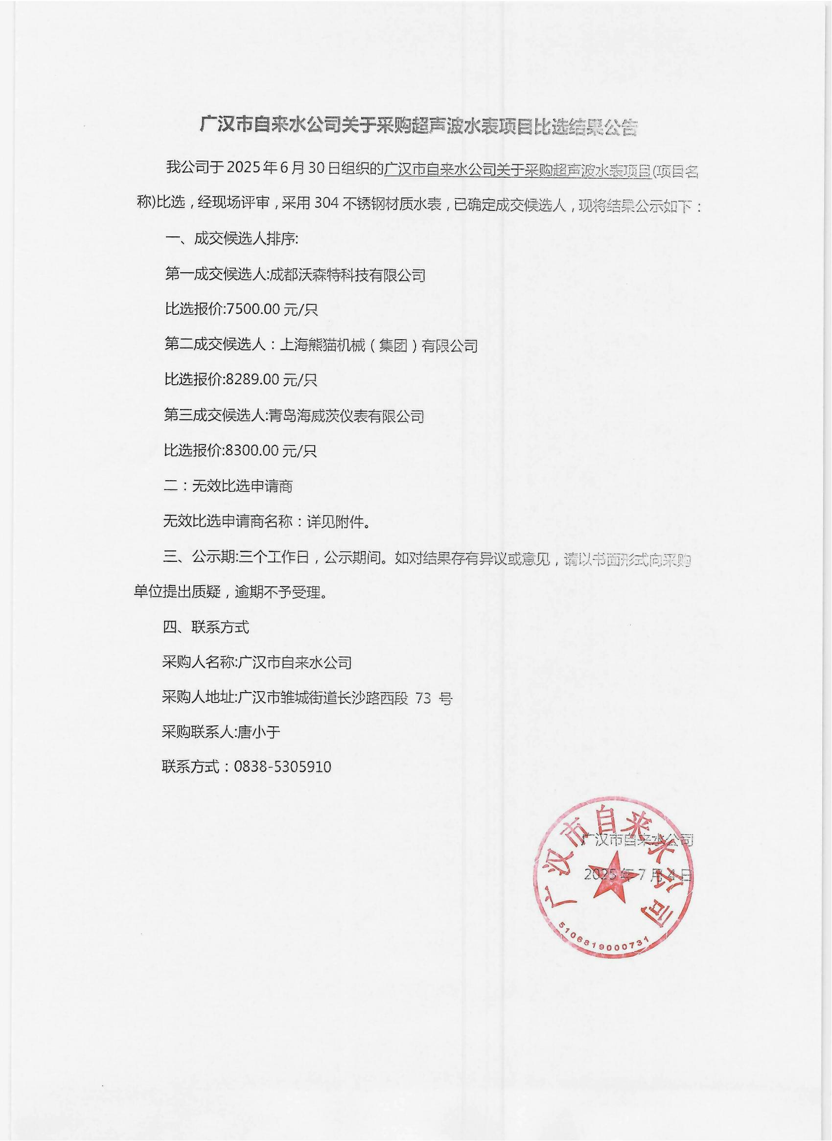 關(guān)于采購超聲波水表項目比選結(jié)果公告
