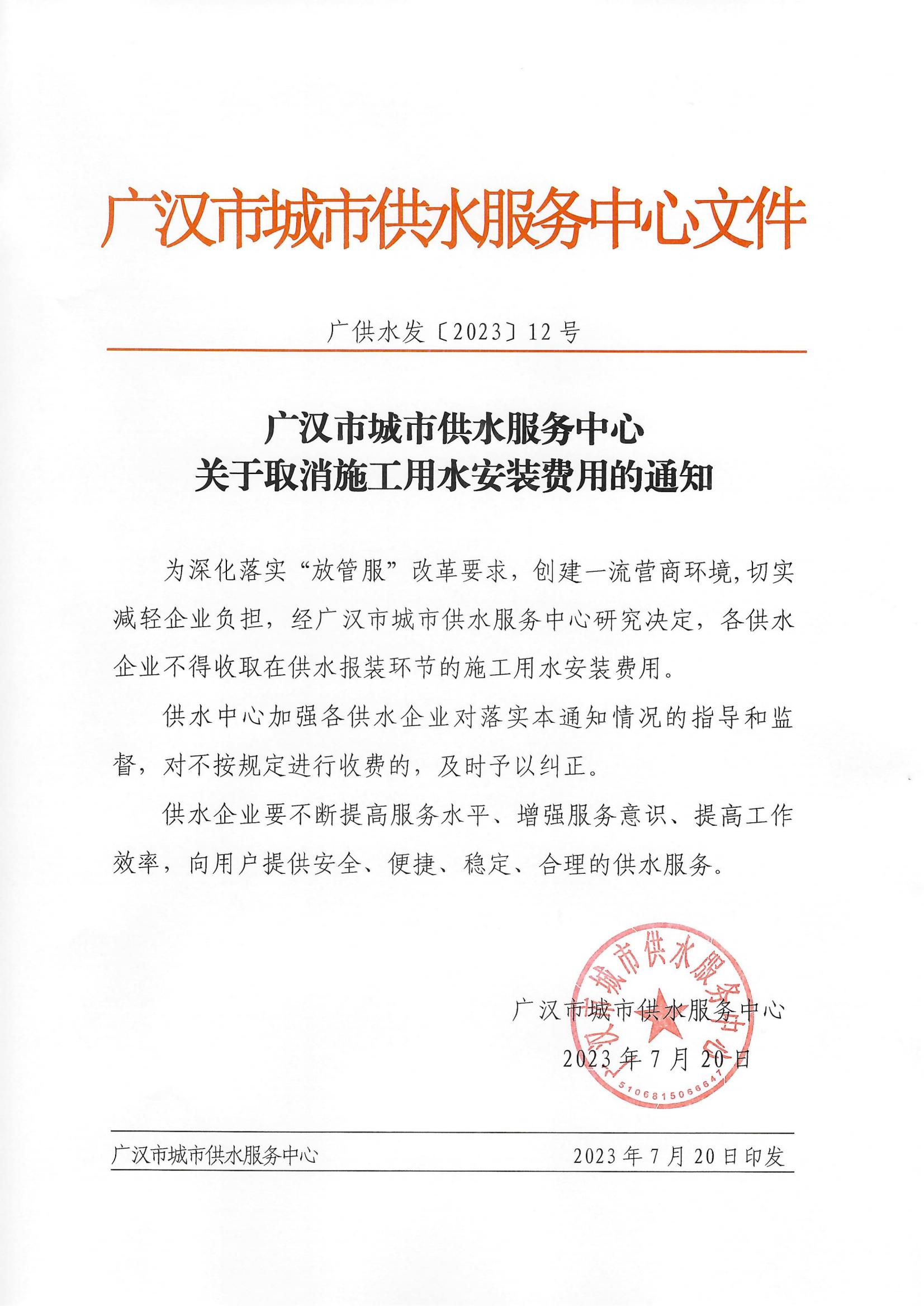 關(guān)于取消施工用水安裝費(fèi)用的通知